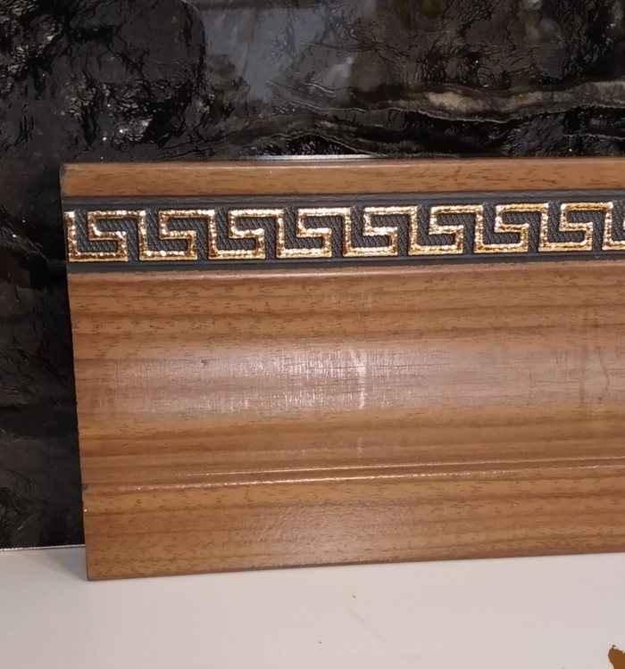 قرنیز pvc 9/5 سانت گردویی و طرح اسلیمی ورساچه روکش خارجی: طول٣متر و عرض ٩/5 سانت و ضخامت١٠میل . کارتن ٢٤عددی